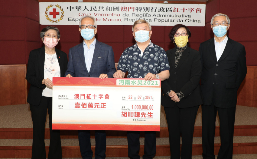 2021年7月22日,澳门胡氏集团主席胡顺谦通过澳门红十字会,